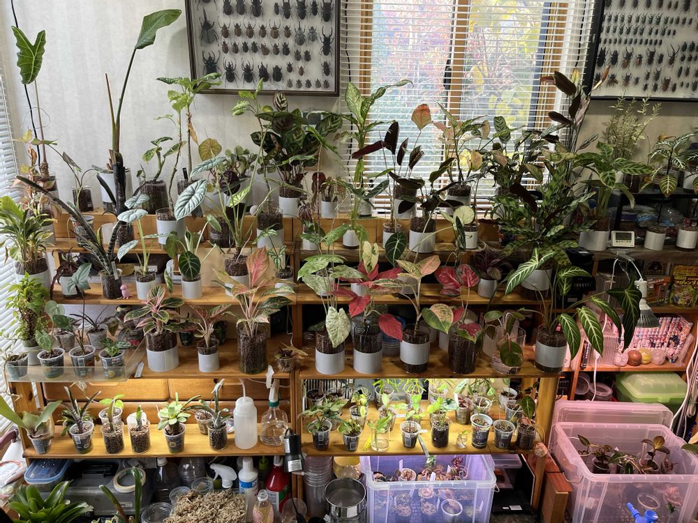 他にも幼苗や発根管理している専用棚や耐陰性のある植物を置いている棚などがあってどのくらいの種類があるのか把握していません😅