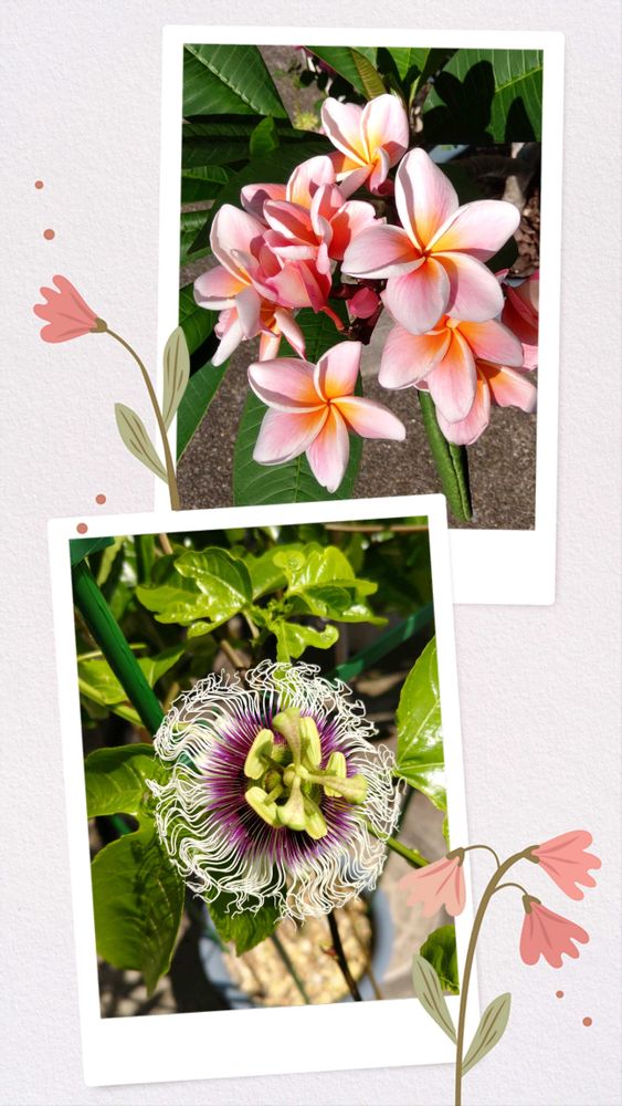 ①今年の夏、我が家で綺麗に咲いたプルメリアとトケイソウ