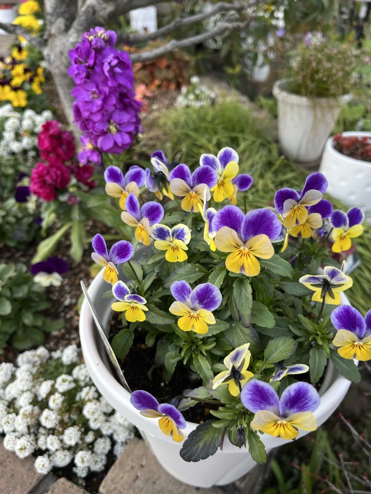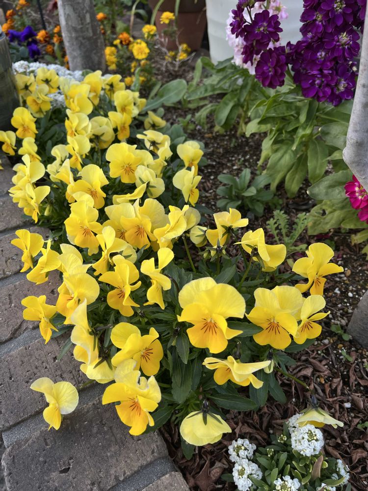 お花、沢山では無いけど花壇のパンビオやストックやフェンスのハンキングのパンビオがこんもりし始めました🎶💓🎶💓