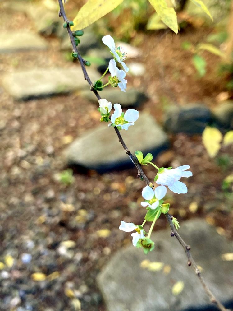 1️⃣我が家石庭で、季節外れのピンクユキヤナギさんが🩷開花しました。