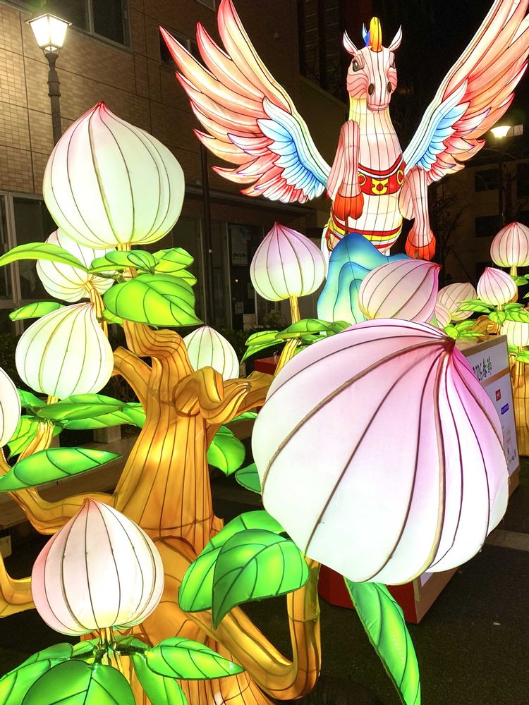 桃と空飛ぶ馬のイルミネーション🍑🦄✨️