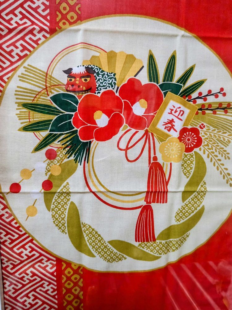3枚め、濱文様の絵手ぬぐい。お正月は「しめ縄飾り」。
