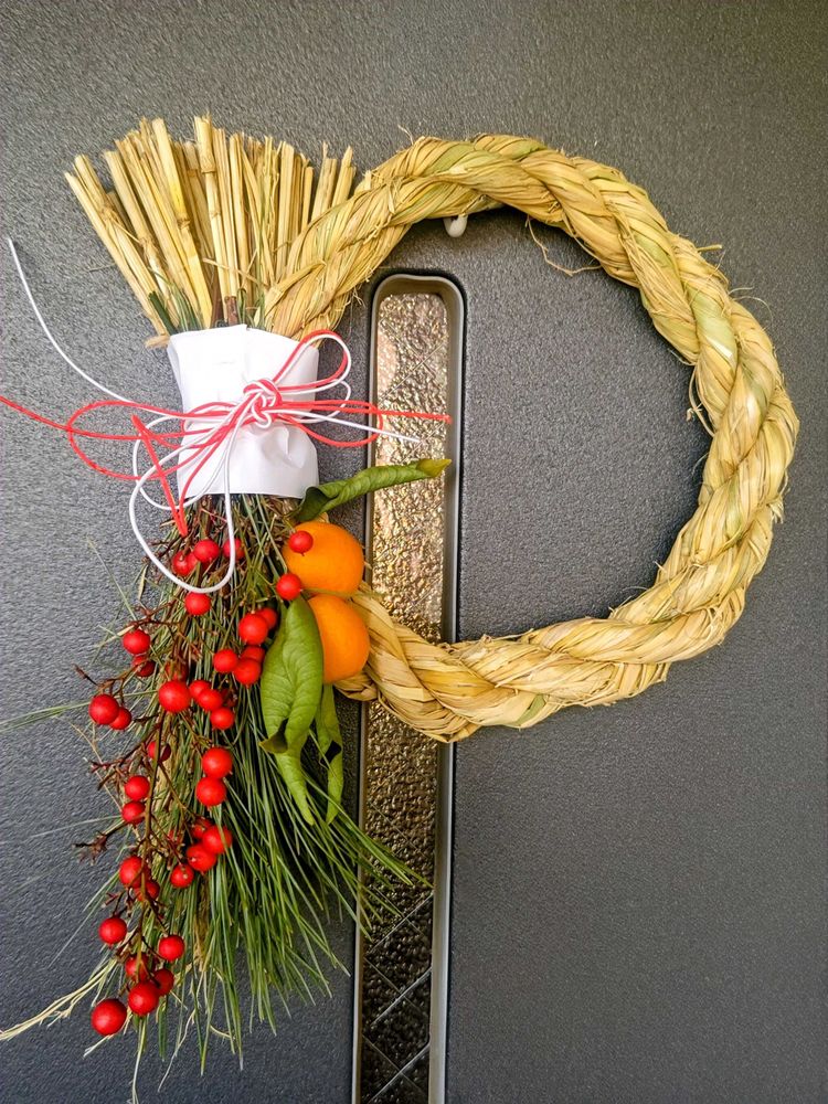 4枚め、昨年末初めて稲藁から編んだ自作のしめ縄。