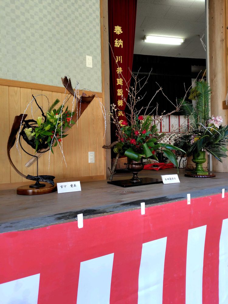 素敵な生け花、神社に奉納、素晴らしい👏👏