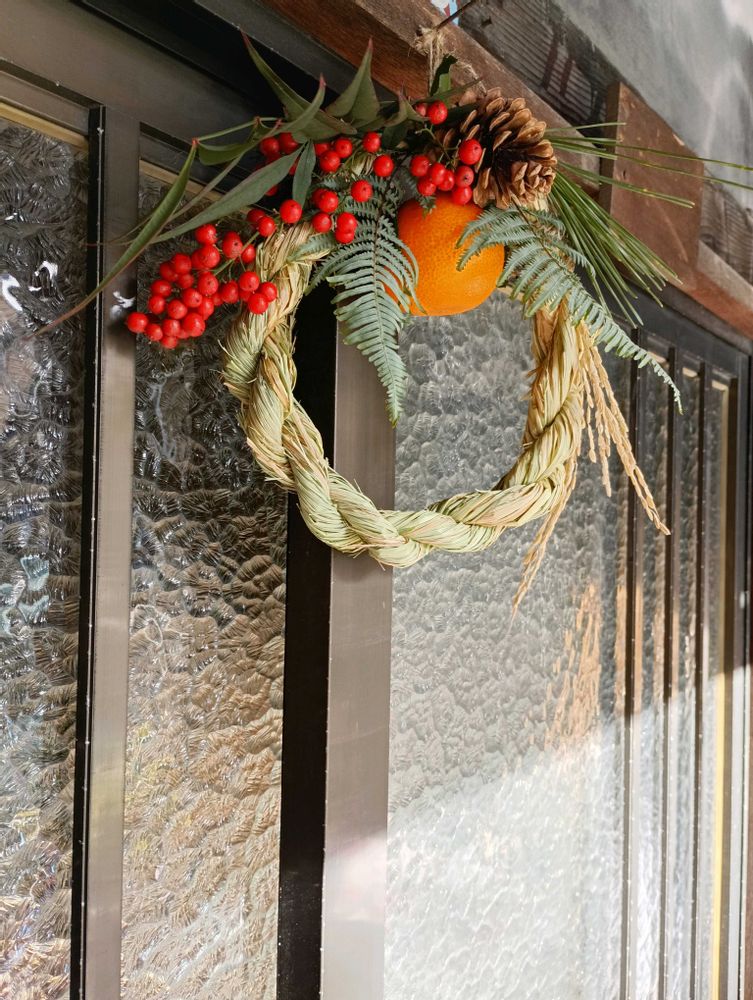 あり合わせのものをくっつけたような、しめ縄飾りですが😅💦