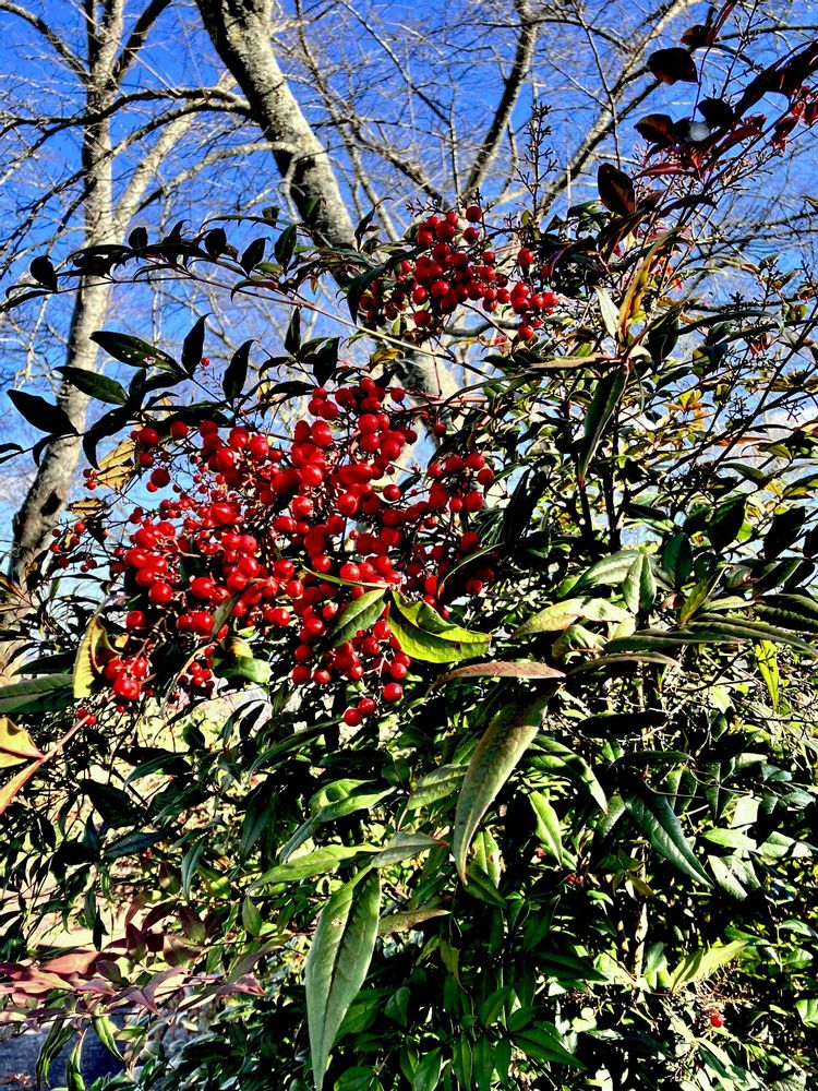 ちょうど年末に行ったところに、赤くなったナンテンがありました✌️