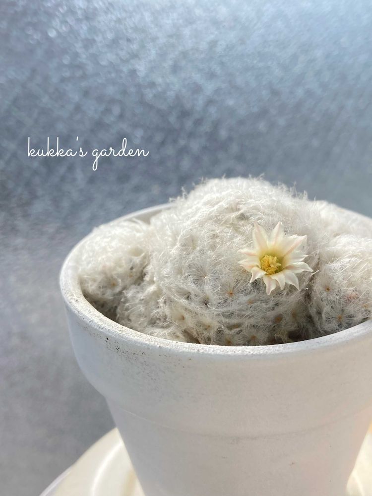 ふわふわだけでも可愛いこのサボテン🌵頭にちょこんと花を付けて可愛いです😍