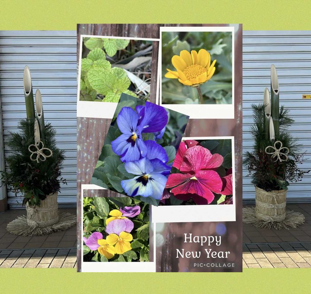 公園の事務所の前の門松と、花壇に咲いていた花を写メしてきました。