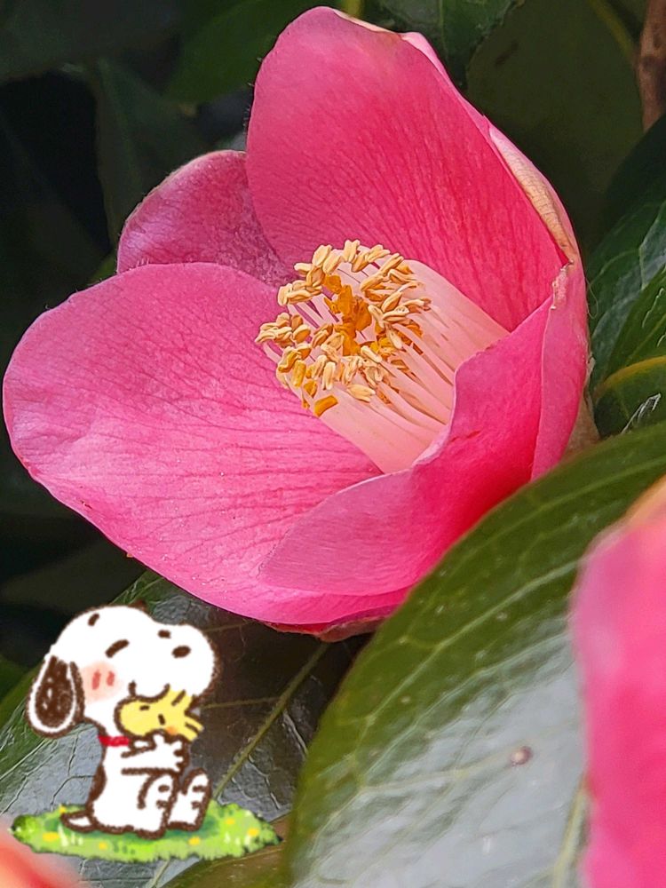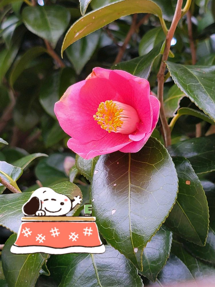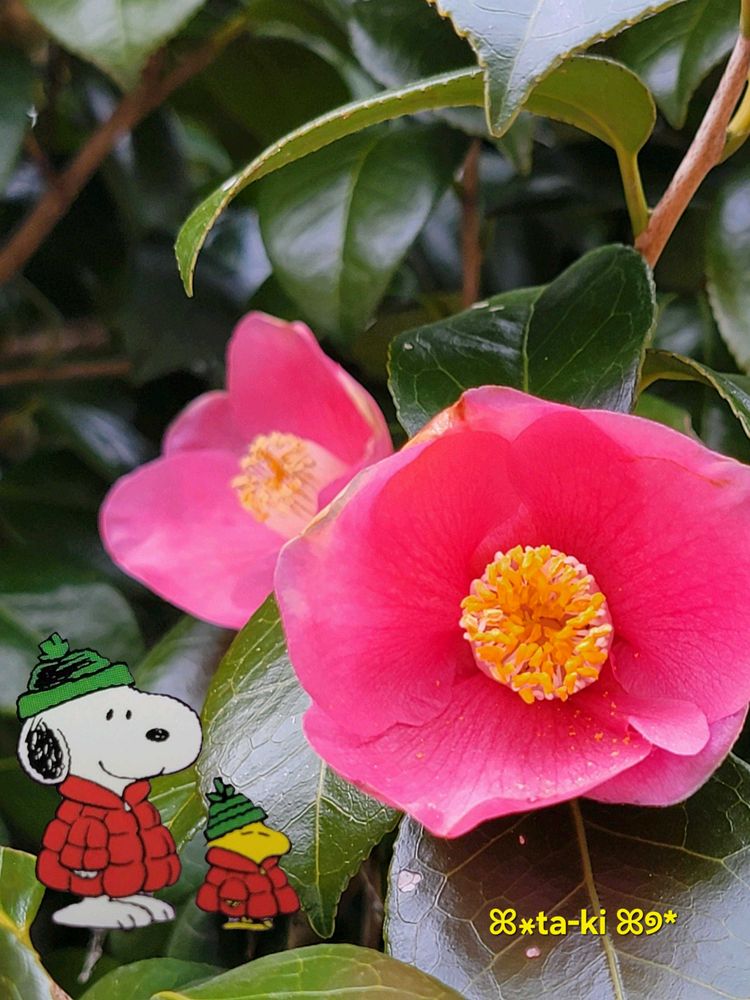 ツバキのお花 スヌーピー お散歩ちゃんのコラージュとても素敵ですね😍