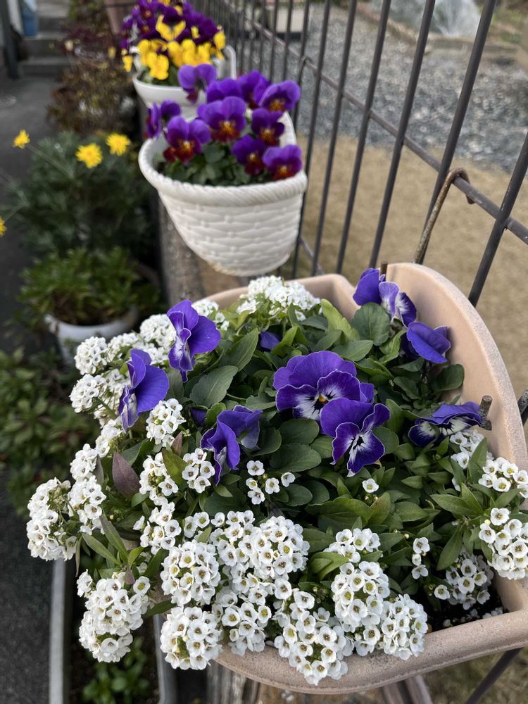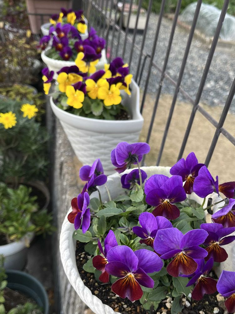 フェンスのお花達です🩷💜💛🤍