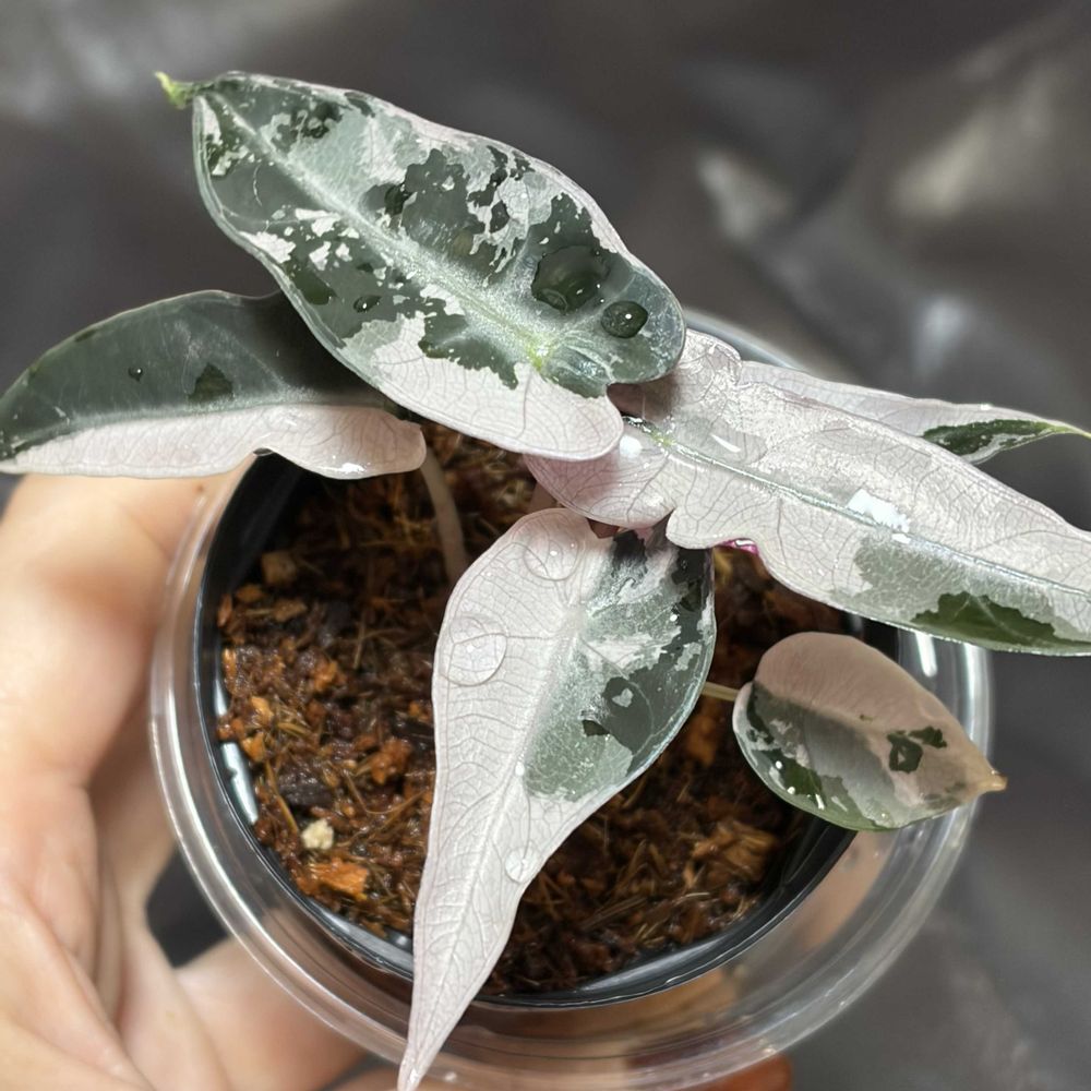 2025.8月に某サイトで購入した【アロカシア チャイ】の 突然変異?なんだろう環境の変化なのか。 購入時、元々有った葉を(1枚目の葉)として、 下から新たな葉が出てきてる状態で到着しました(2枚目の葉) こちらに来て初めて出てきた葉に異変が。。 育て始めて出てきた初めての3枚目、4枚目 (途中から、斑1、斑2、、と続きます) どこまでこの謎の斑入葉が続くのか、 いや止まるのか……記録していきます