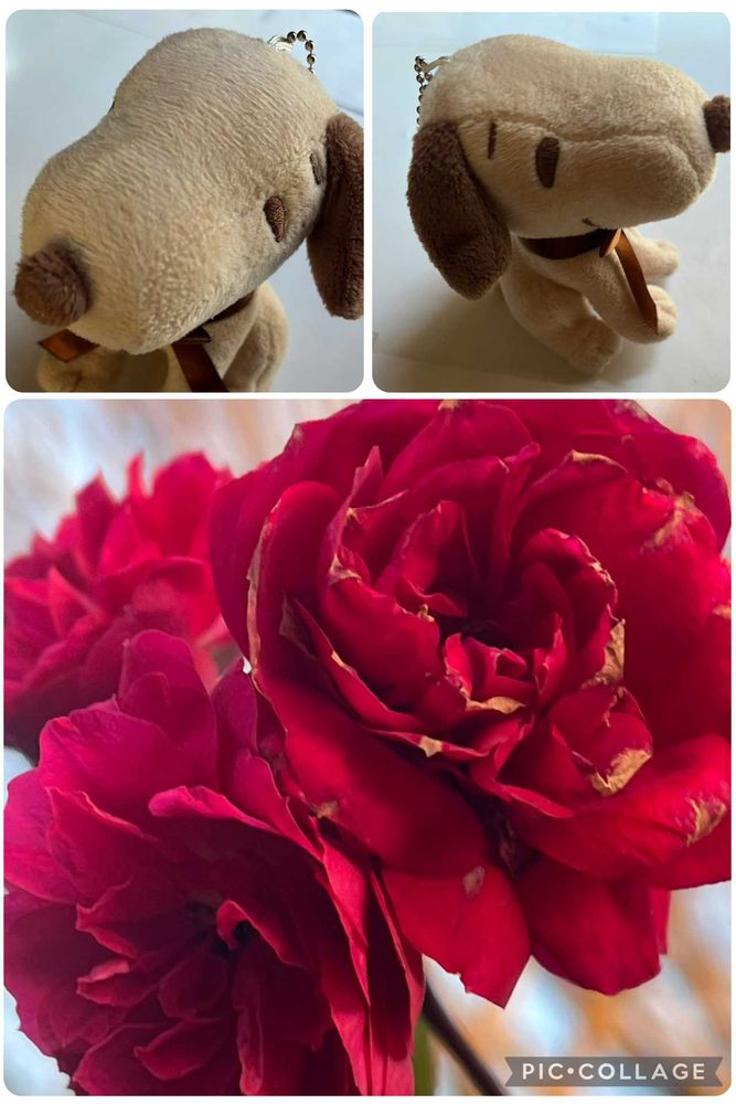 バラと一緒に孫ちゃん2歳のスヌーピーのぬいぐるみで参加しまーす♡