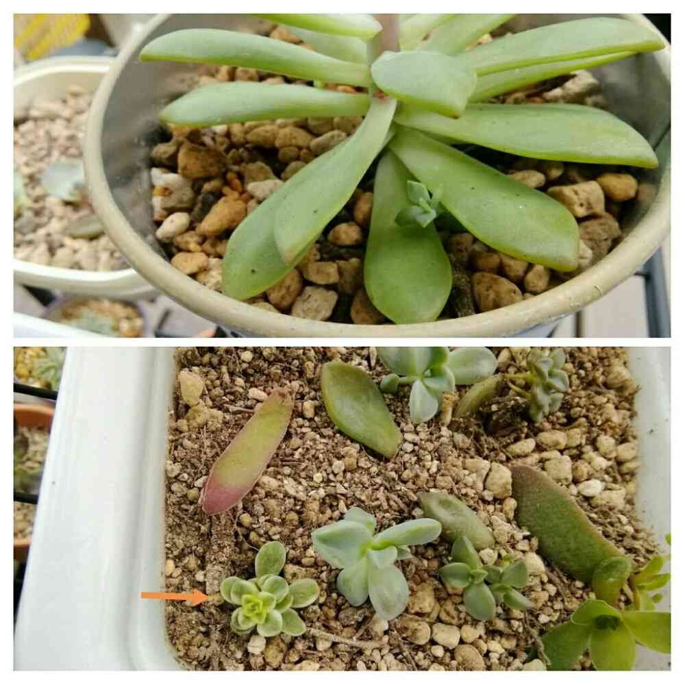 下の葉挿しの中に覚えのない斑入りの赤ちゃん🌱