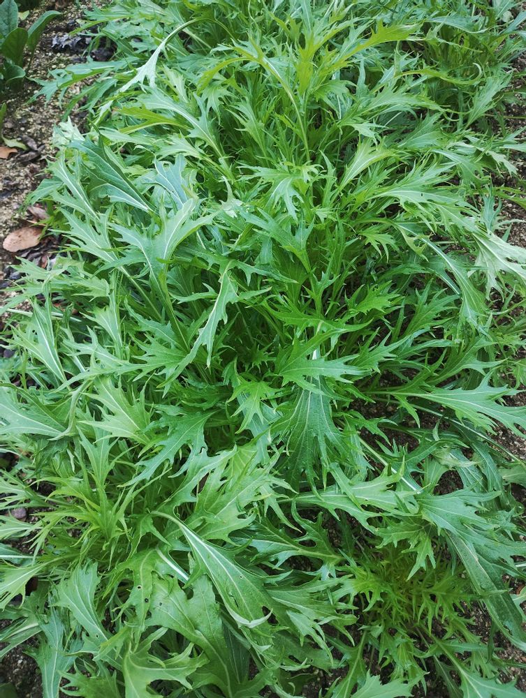 実家の家庭菜園、ダイソーの種から立派な水菜が育っていました😊