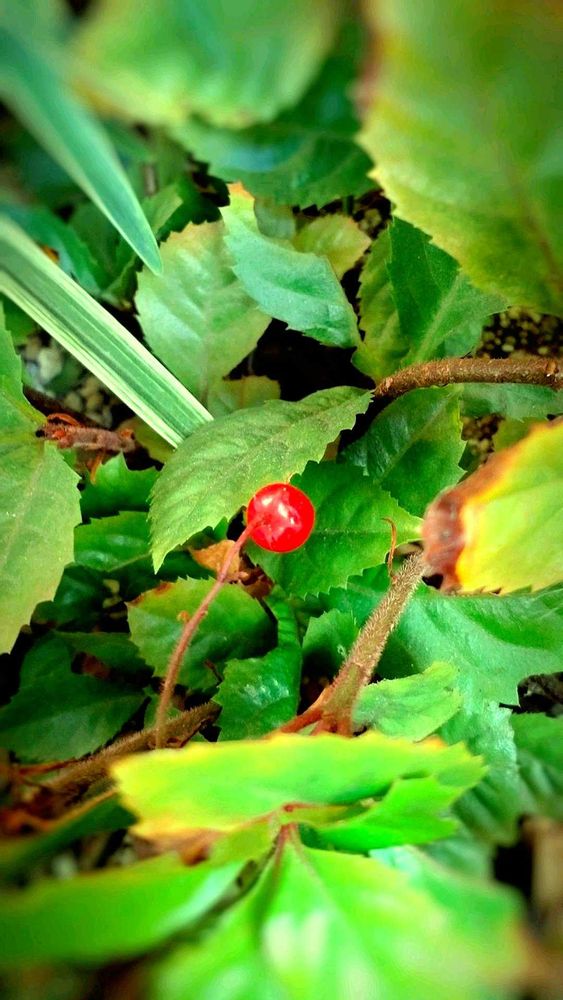 この赤い実と葉を調べてヤブコウジであることを知りました😁