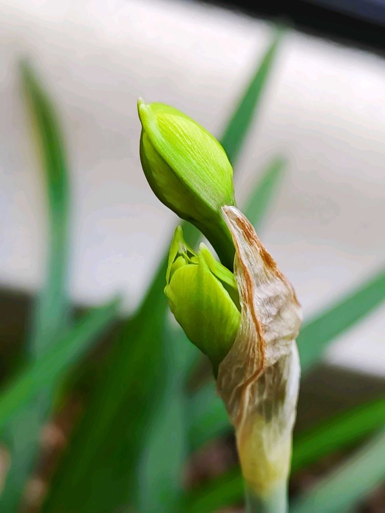 ④八重咲き水仙の蕾もあと少しで開花