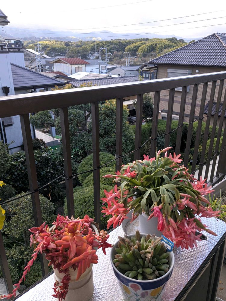 二階テラスではシャコバサボテンが満開に〜👏🥰🎶