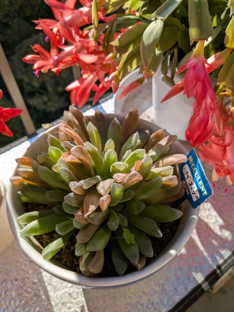 コーデックス師匠と仰ぐGS 友さんへパキプス君をお届けがてら、1年ぶりの二和園へ🚗💨 師匠のお友達と4人でハウスの中を行ったり来たり⇄ 植欲増進中の私は購入🈲️ルールなんて無視💦 ずっと気になっていた子たちをGETしてきました😊 植物名: 瑠璃殿錦 学名 :Hawworthia limifolia f.variegata 英名 :Fairy Washboard 科名 :ユリ科 属名 :ハオルチア属 原産地: 南アフリカケープ州 流通名: 瑠璃殿錦 生育型: 春秋型