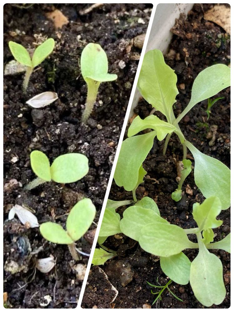 こぼれ種で発芽したのが少しずつ成長してます♪
