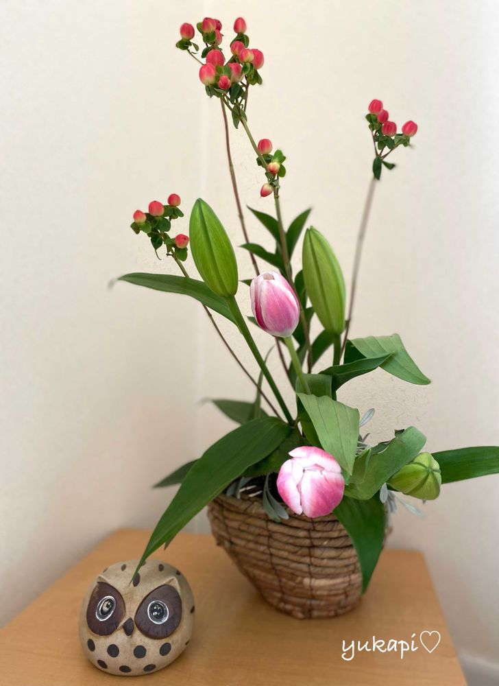 チューリップ🌷のお花とヒペリカムがとってもあって、