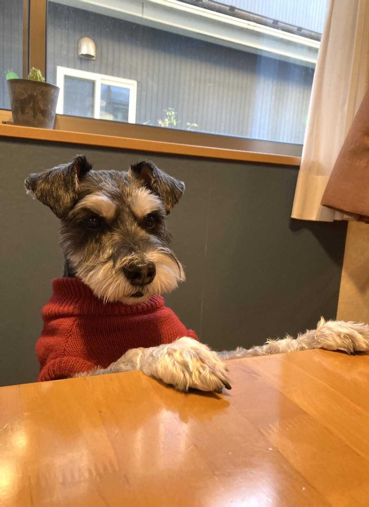 お利口さんにお座りして暖かいセーター着てる🧶娘さんやご家族のたくさんの愛情いっぱいですね💗
