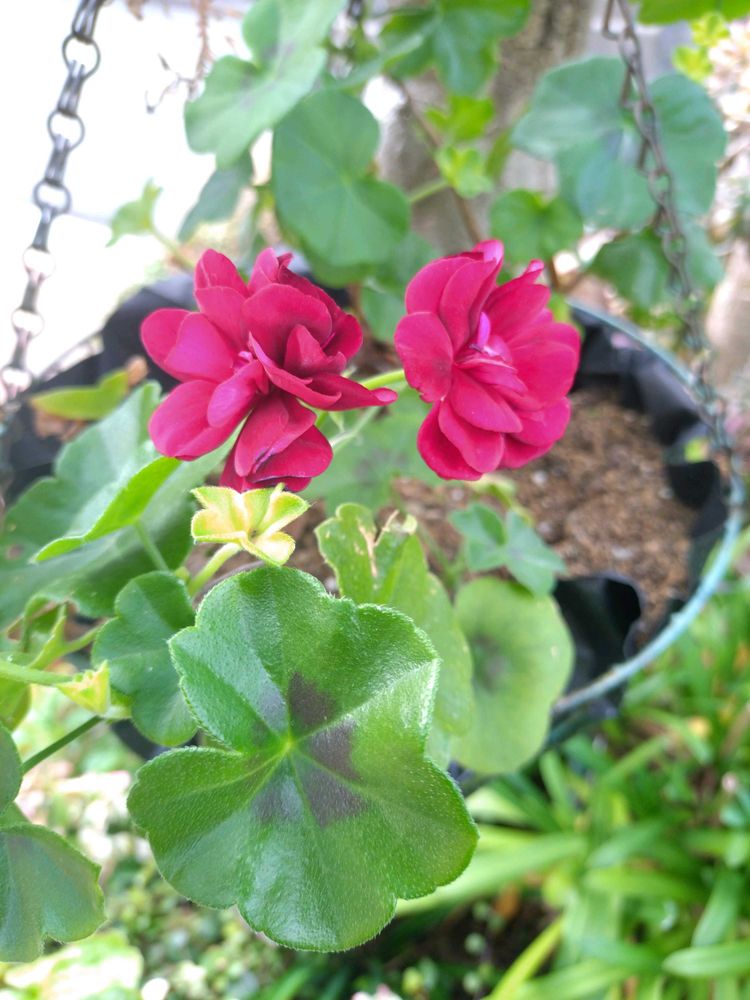 ①秋に仕立て直したアイビーゼラニウムにお花が咲きました。💕