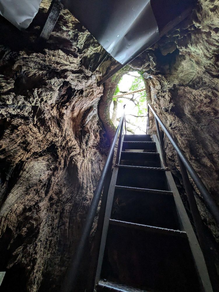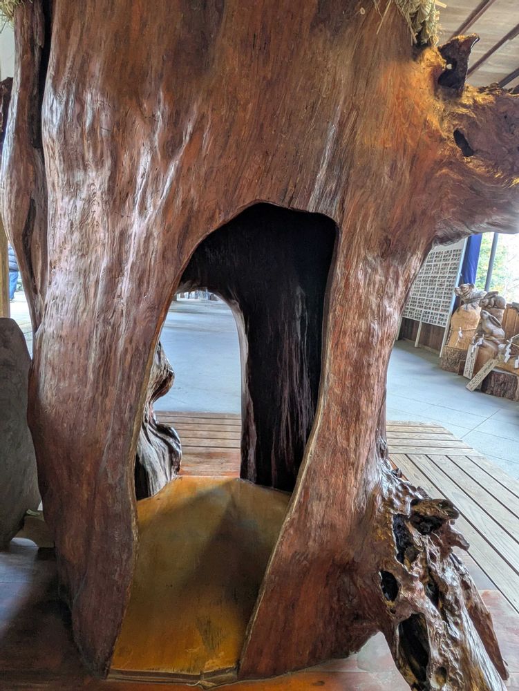 願い事を書いた護摩木を持って幹の空洞を巡りました