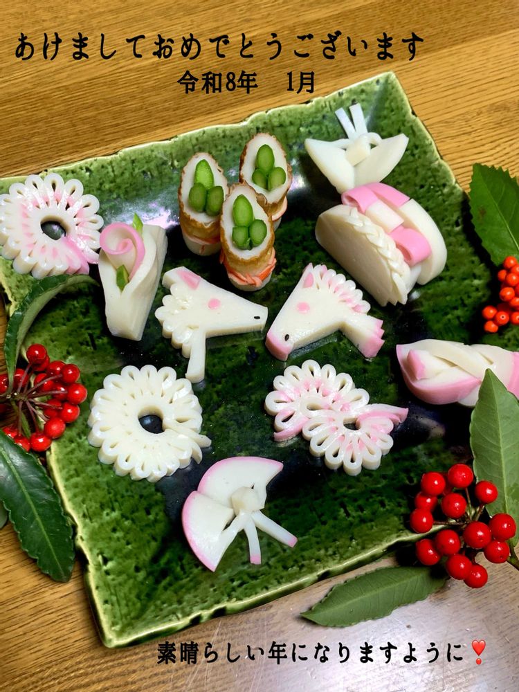 毎年恒例になった、かまぼこの飾り切り🤩