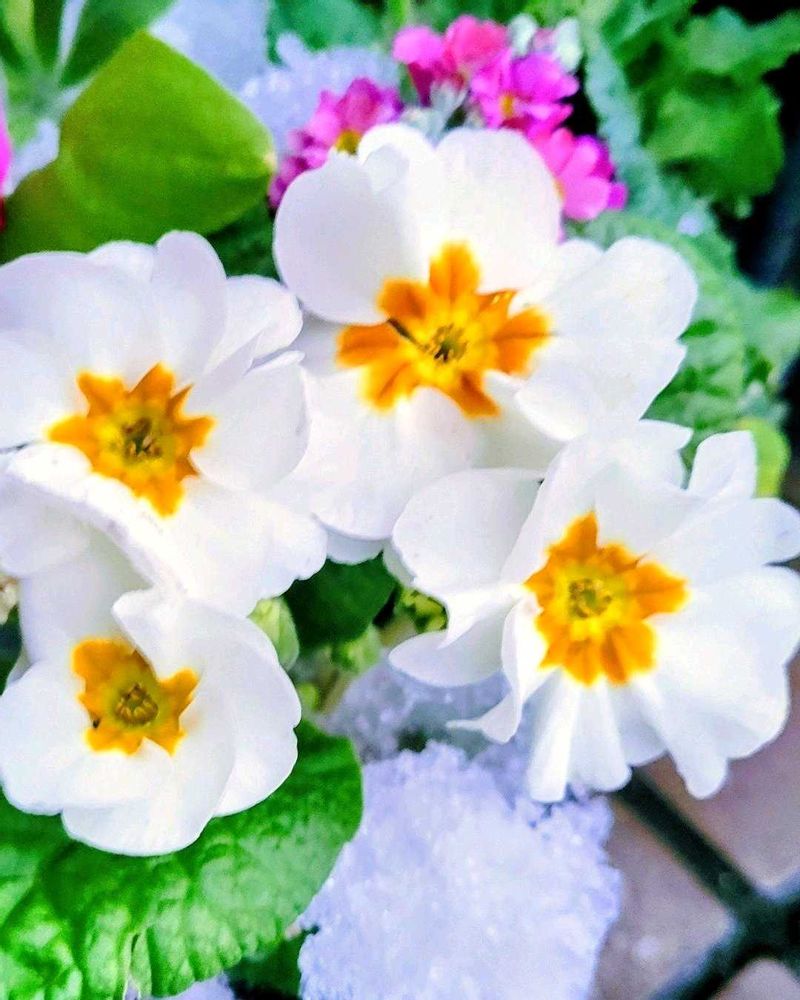 雪解けも…屋根の雪がお花達の上に…頑張って欲しい
