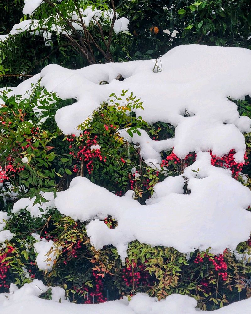 ④ナンテンの木の枝雪の重みで倒れてしまった🔴🍃🌳