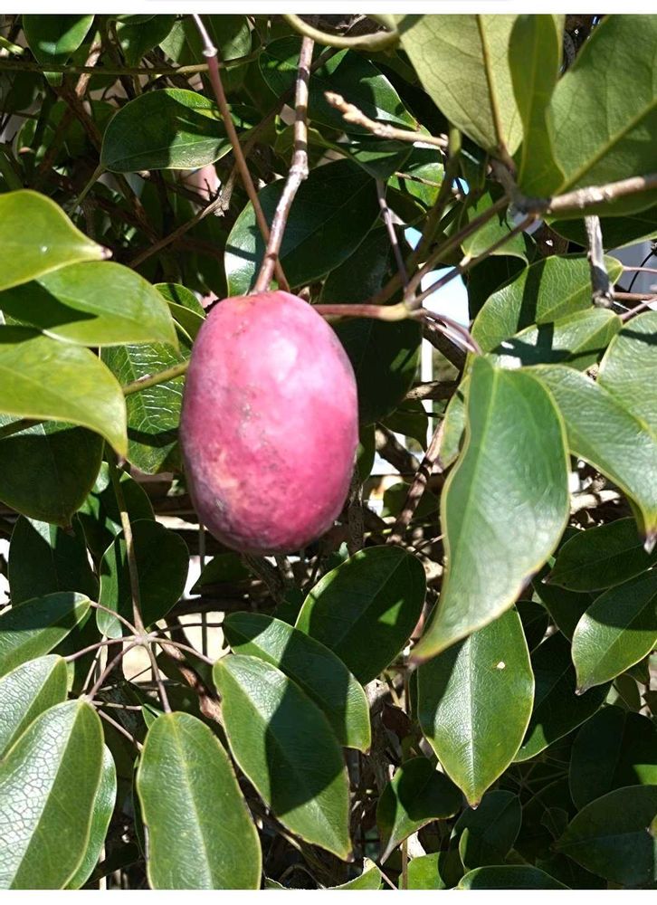 ❶掘出神社⛩️の近くのお宅の垣根にムベの実が🔴アケビ科ムベ属