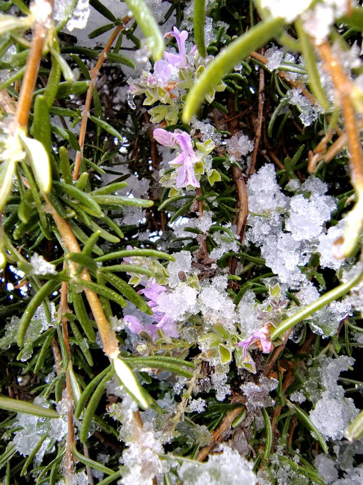 ➄2日は結構降りましたよ❄ ローズマリーにもどっさり雪が😅(もう溶けてますが⋯)