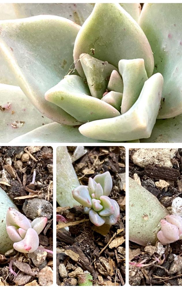(下)葉挿しでそれぞれ新芽が出てきてます♪
