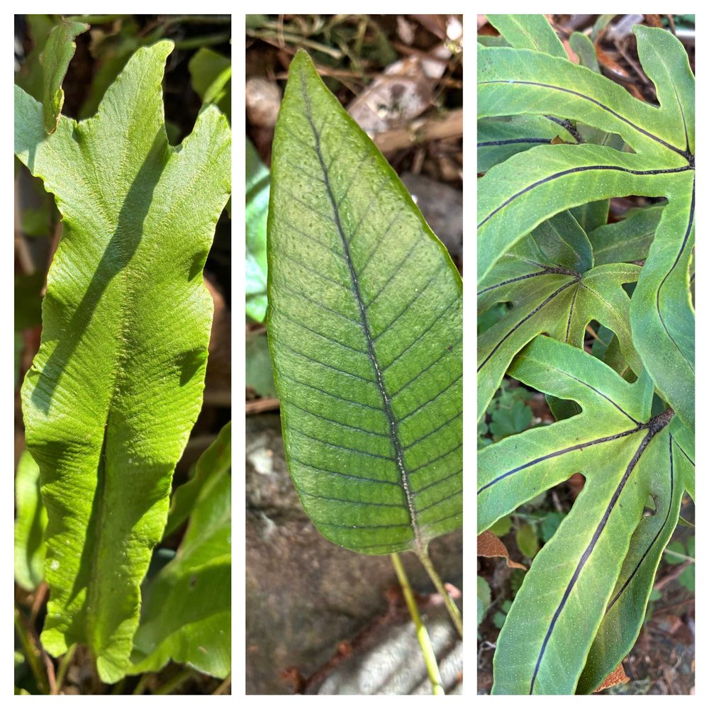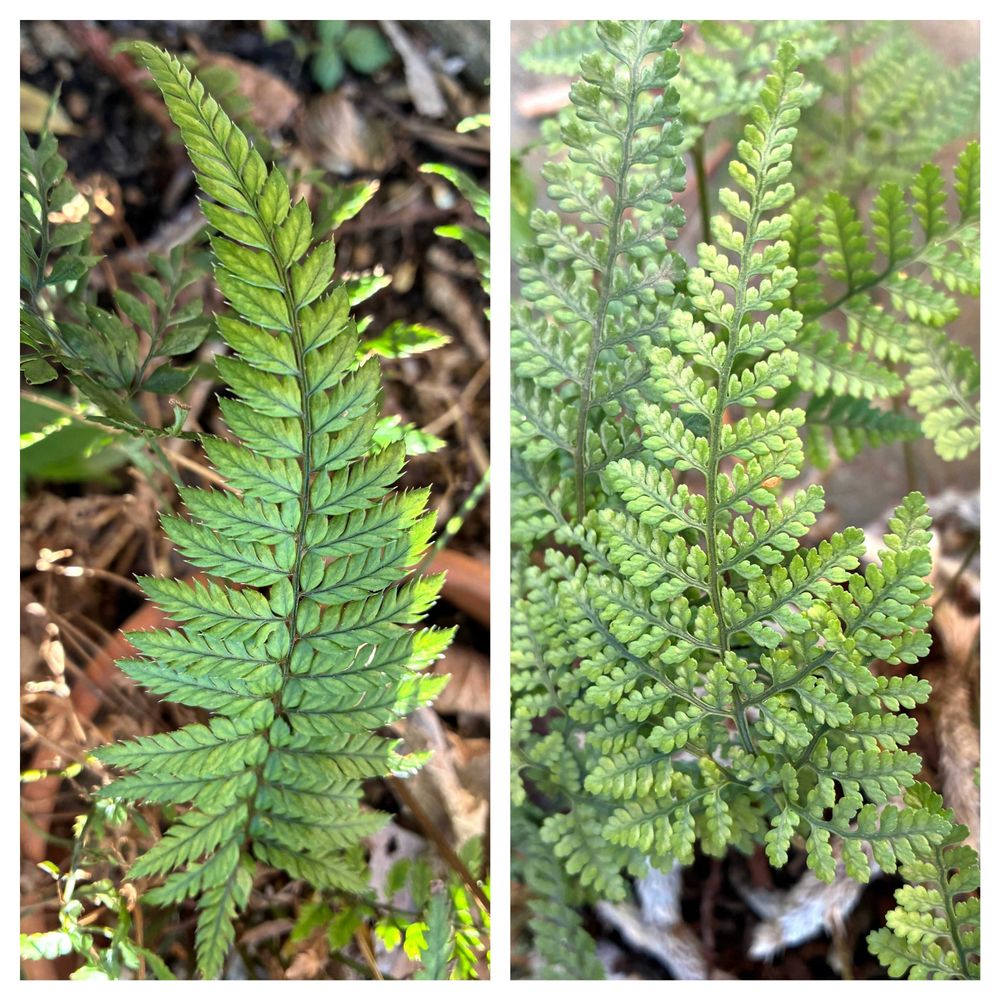 1枚目:左−ヒメカナワラビはオシダ科イノデ属のシダの中では小型で、カサカサした雰囲気の葉が魅力です。