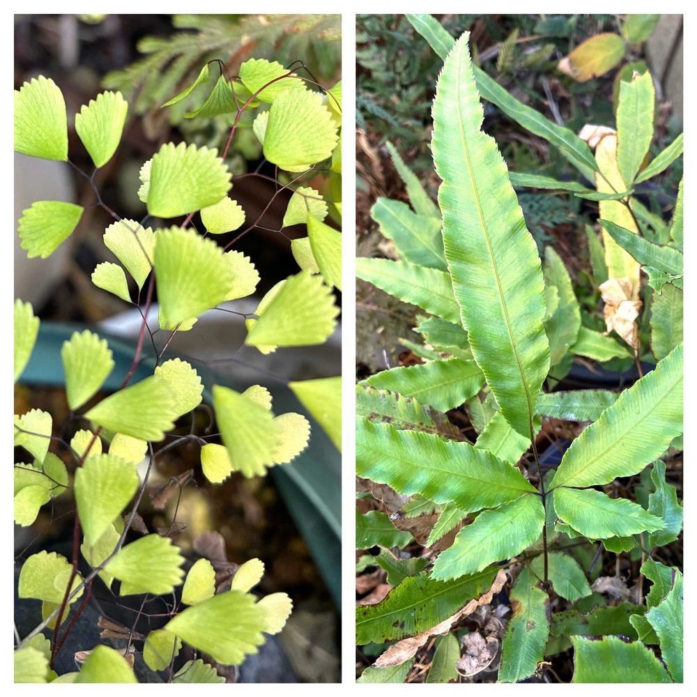 2枚目:左−ハコネシダは、ホウライシダ科ホウライシダ属、所謂アジアンタムの仲間です。