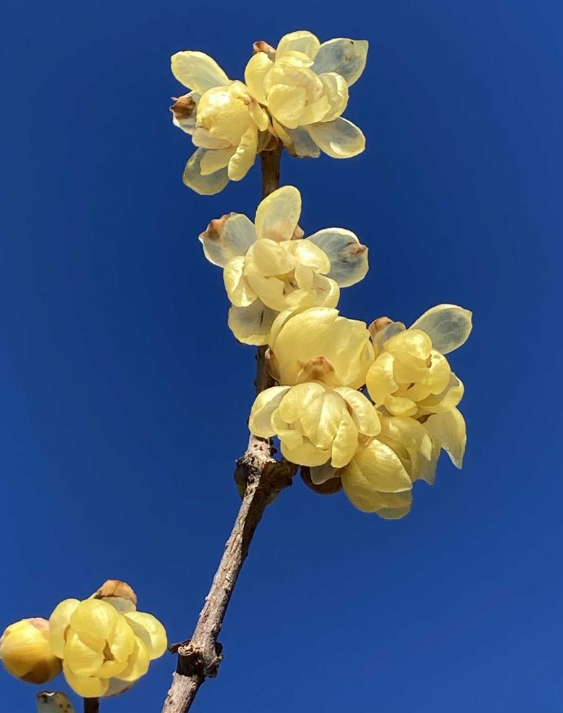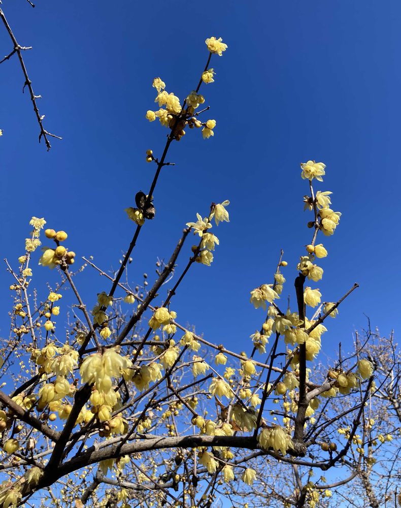 澄んだ青空にロウバイの黄色い花が映えて綺麗ですね~💛