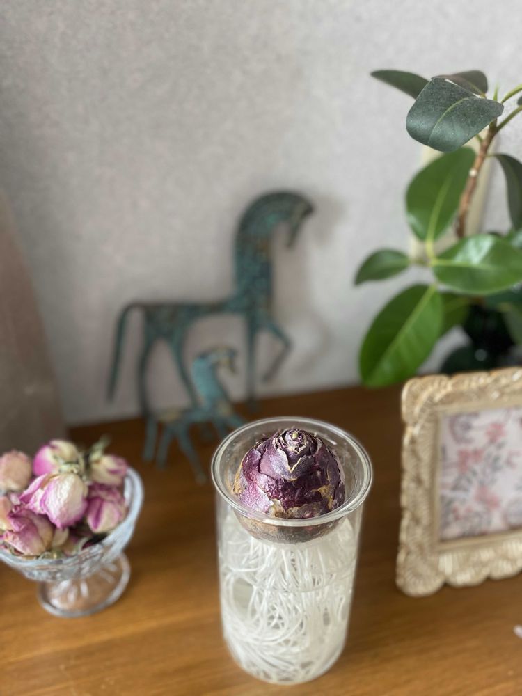 ①ヒヤヒンスの芽が1ミリでて来ました🌱🎶💕