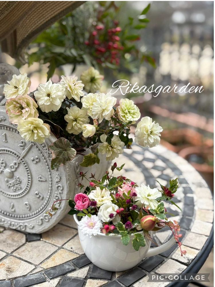 今の庭にはお花が少ないので、小さ〜いアレンジです🤭