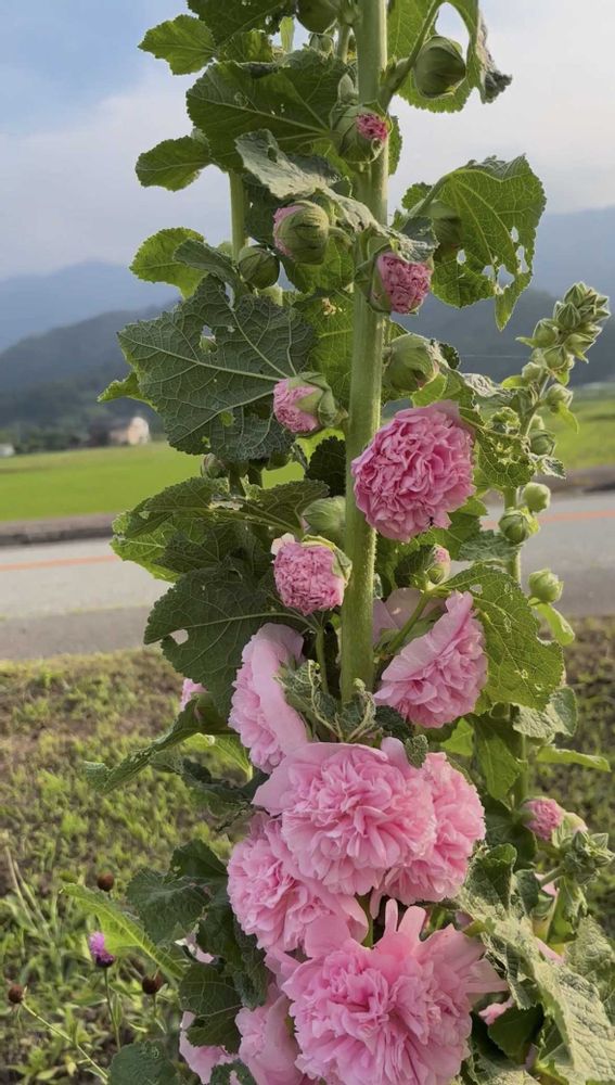 八重咲きのホリホック可愛いですね😍