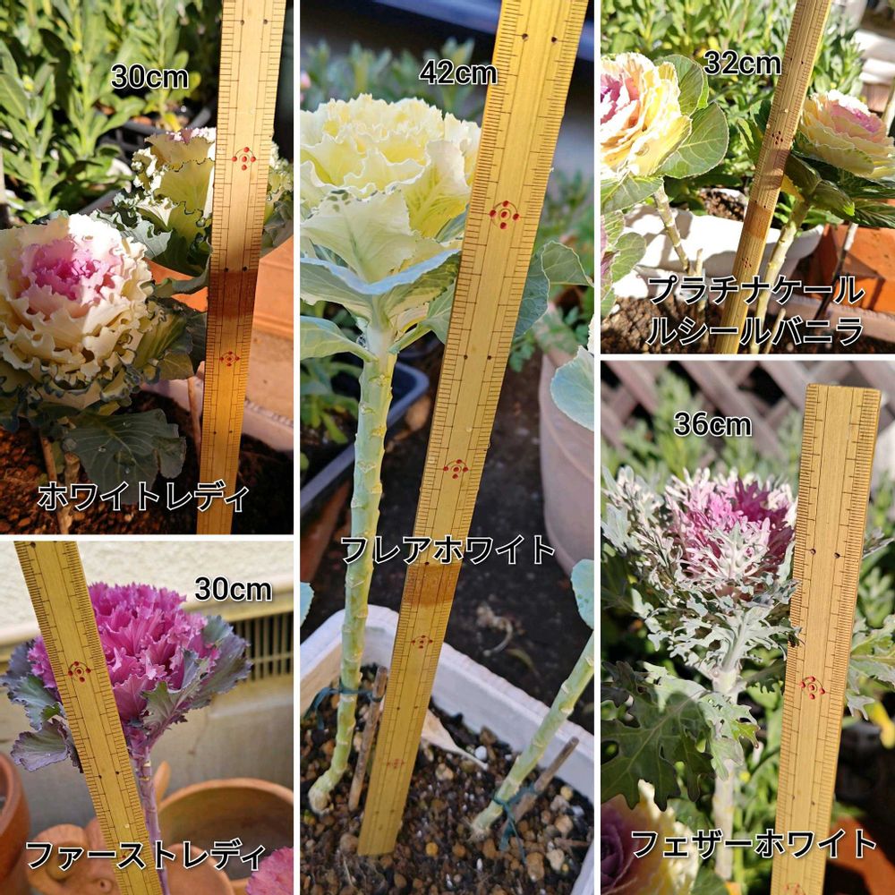 【3枚目】65cmプランターで育苗した高性葉牡丹たちの身長測定📏をしてみました😁