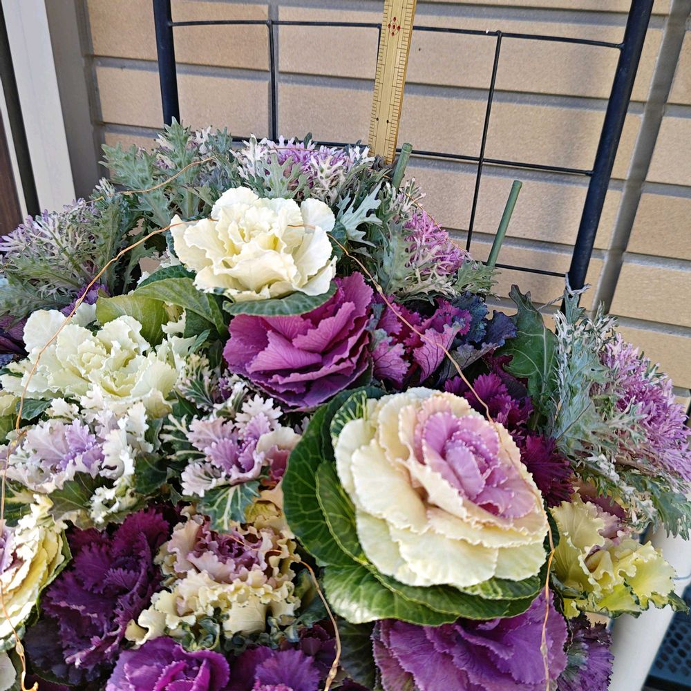矮性葉牡丹は大きく育ててみるとなかなか迫力があり、お庭が明るくなりますね☺️ 何より矮性は支柱立てしなくていいから楽ちんでーす😚