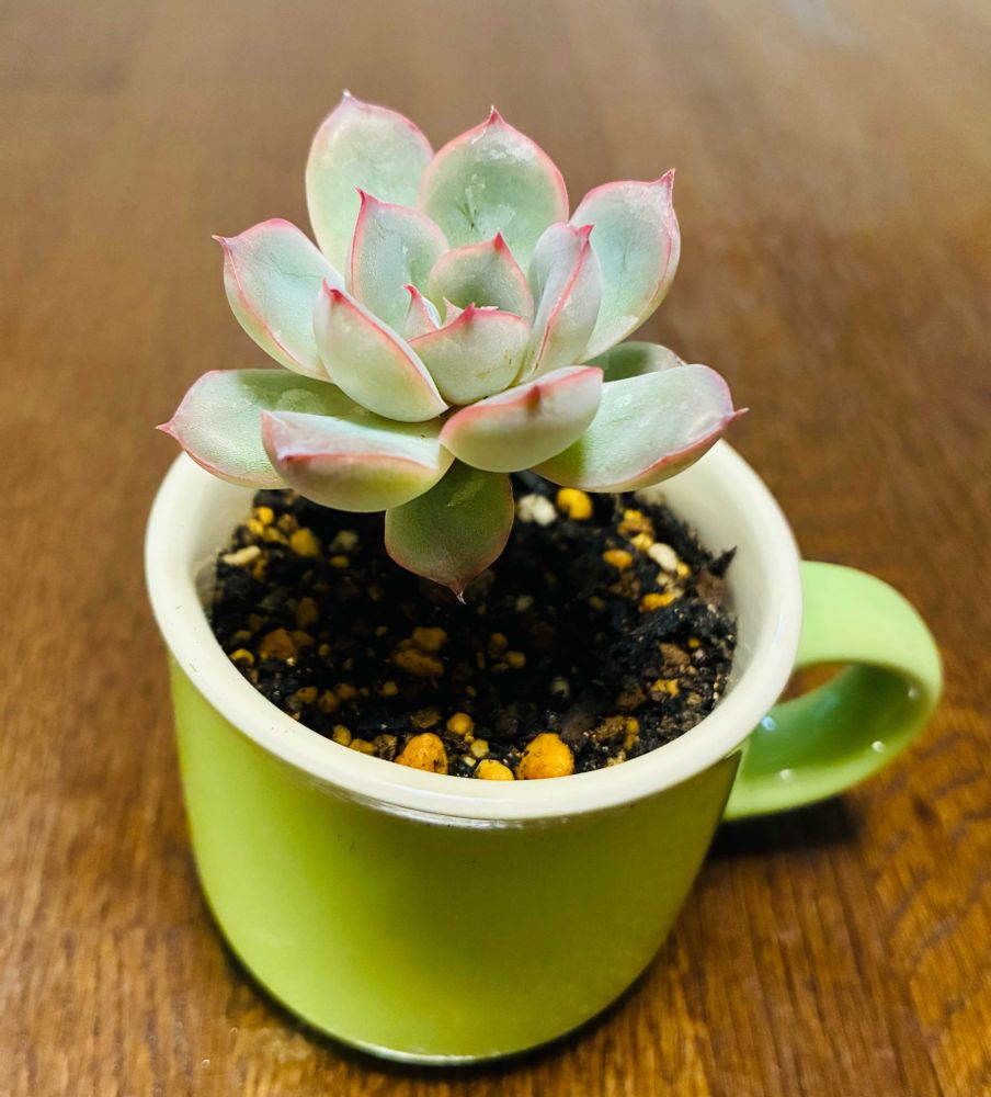 100均の陶器に穴を開けて植えました。会社のデスクに持っていこ〜っと😚