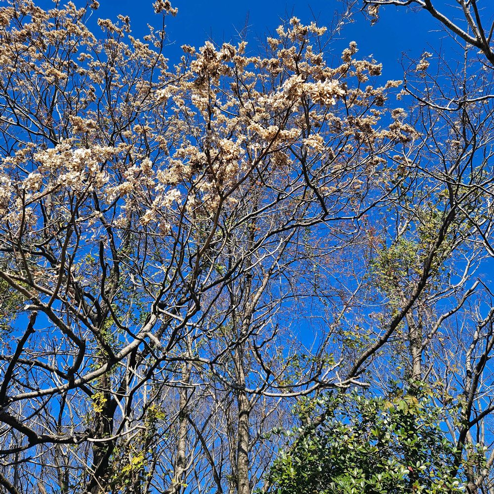 ❸アオギリ まだ少し種も残ってるようです。上の方は分からないけれど私の観察出来る場所には種も見えました🟤👀