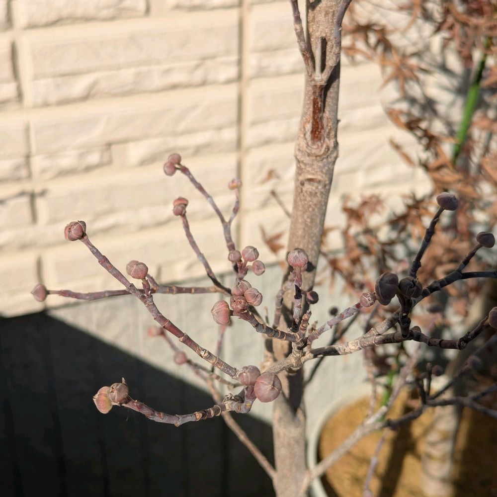 鉢植えのハナミズキの蕾。今年もたくさん咲きそうです。水切れ注意。