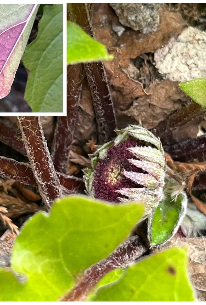 ④はガーベラの葉裏が寒さの為少しだけ紫がかっていますがこちらも蕾をつけています