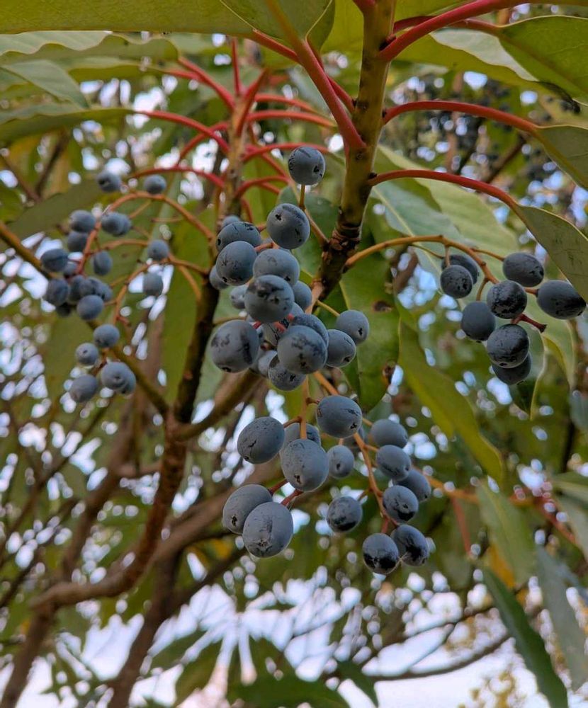 ユズリハ科ユズリハ属の常緑高木。山地に生え、庭木や公園樹として植えられる。光沢のある葉は枝先に集まる。裏面はロウ質で粉白色、長い葉柄は赤みを帯びる。春に枝先に若葉が生え上向きに伸び、古い葉は黄葉して垂れ下がり夏から秋に落ちる。花期は5~6月。総状花序に花弁も萼もない花をつける。雌雄異株で、茶色い雌しべまたは雄しべだけの地味な花が集まる。果実は核果で秋に熟す。ほぼ球形で径1~1.2㎝。藍黒色で表面は粉を吹く。核は楕円形。