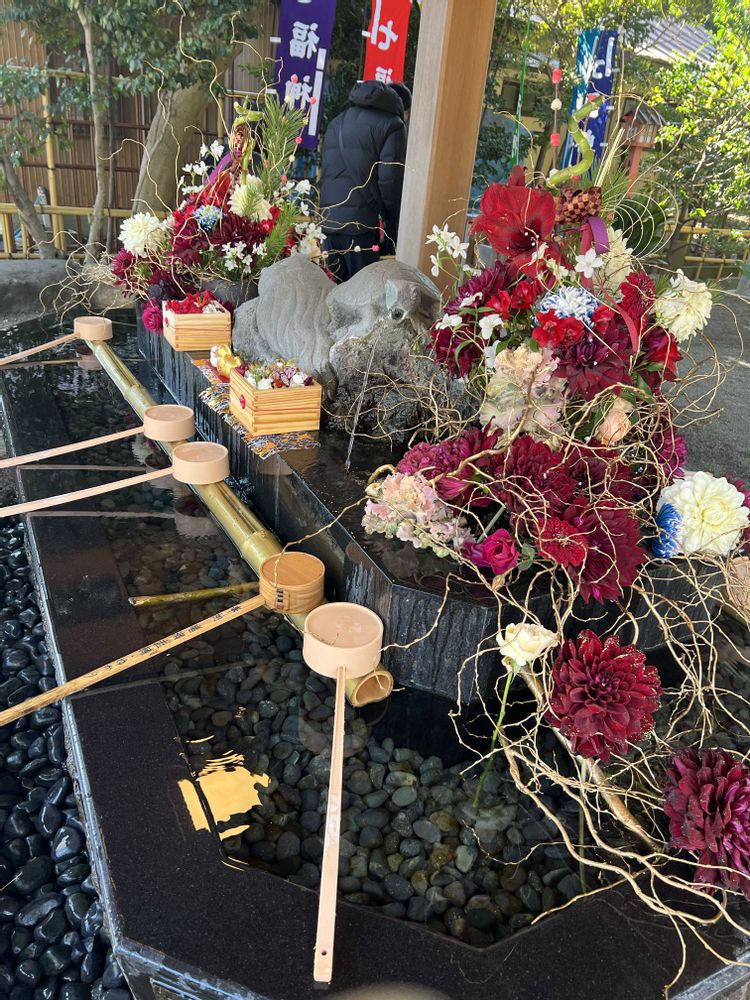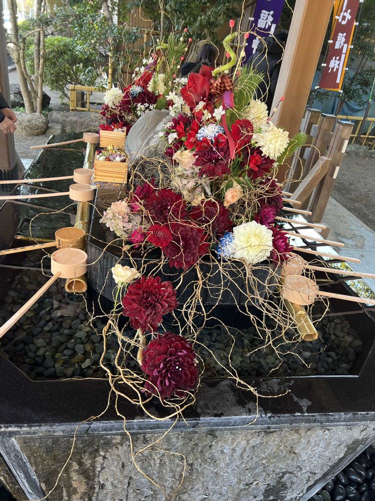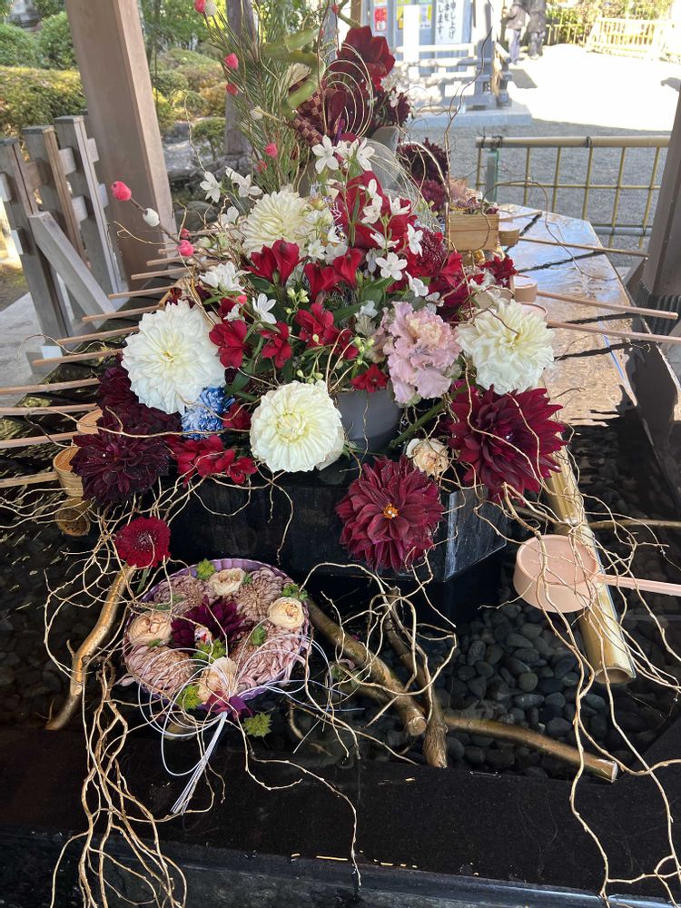神社⛩️花手水🌸🌼