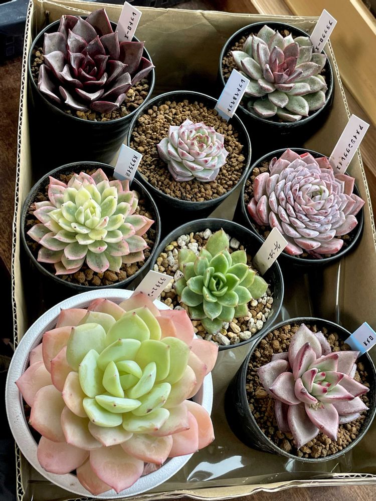 エケベリアの福箱が沢山並んでいて、見ているだけで幸せで、優柔不断で選べなくて大変でした💦毎年福箱買っちゃいそうです😆💓
