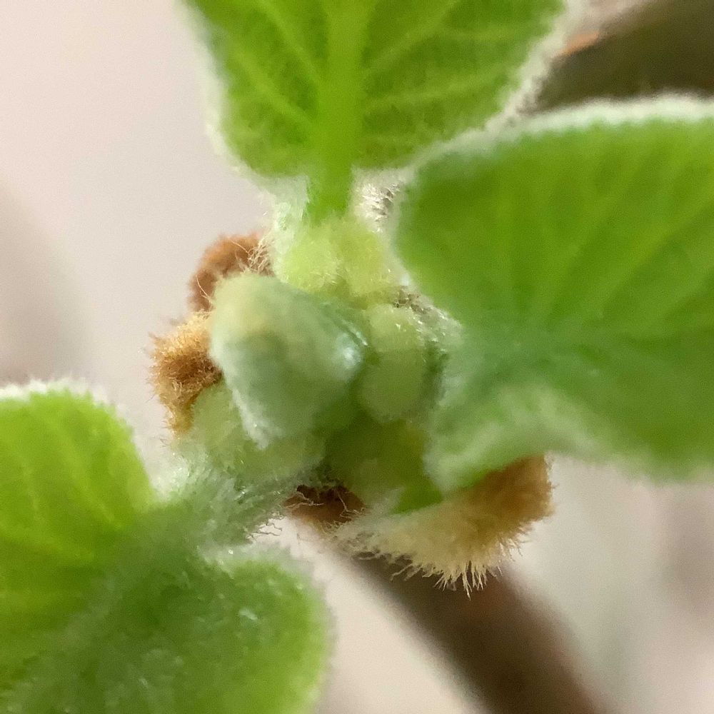 室内に取り込んでいたキウイ「孫悟空」の葉が開きました 蕾がどの様に出来てくるのかはっきりしなかったので、葉のところを観察して見ました その結果、膨らみが葉の基部に多数認められました これらの膨らみが将来蕾になるということなら展葉期にはすでに蕾の原基が出来ていることになるので、観察を続けてこのことを確認します
