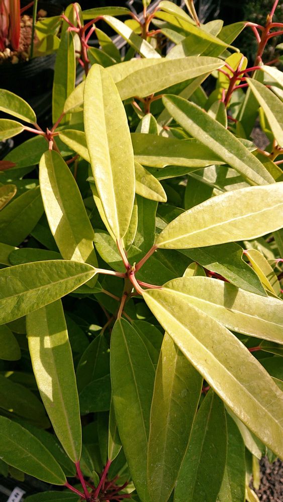 ゆずりはと違うのは葉っぱが垂れ下がらず、ふちにのこぎり歯があることも…